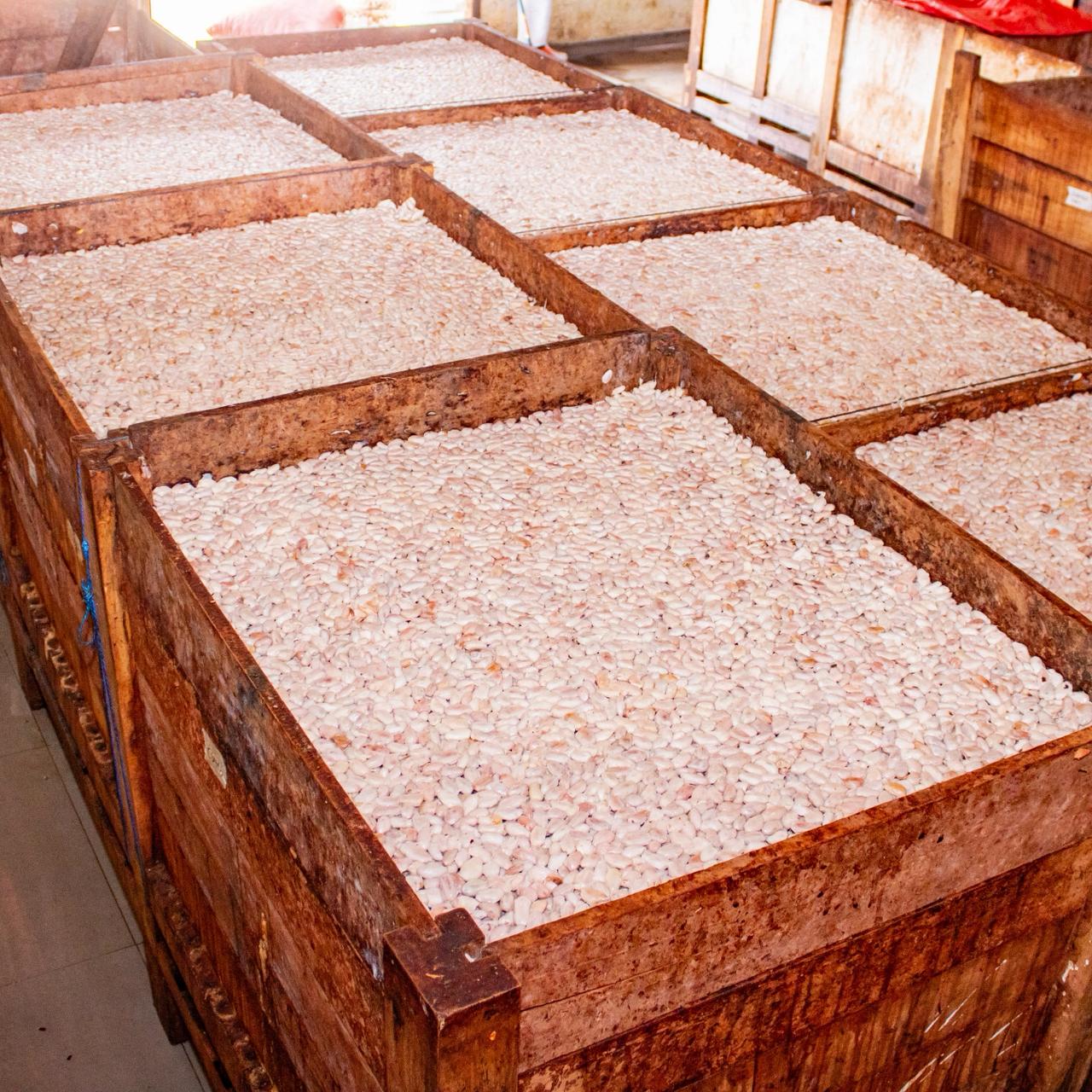 Nuestro equipo capacitado clasifica el cacao eliminando defectos como granos planos, partidos o insectados, asegurando lotes homogéneos y de alta calidad.